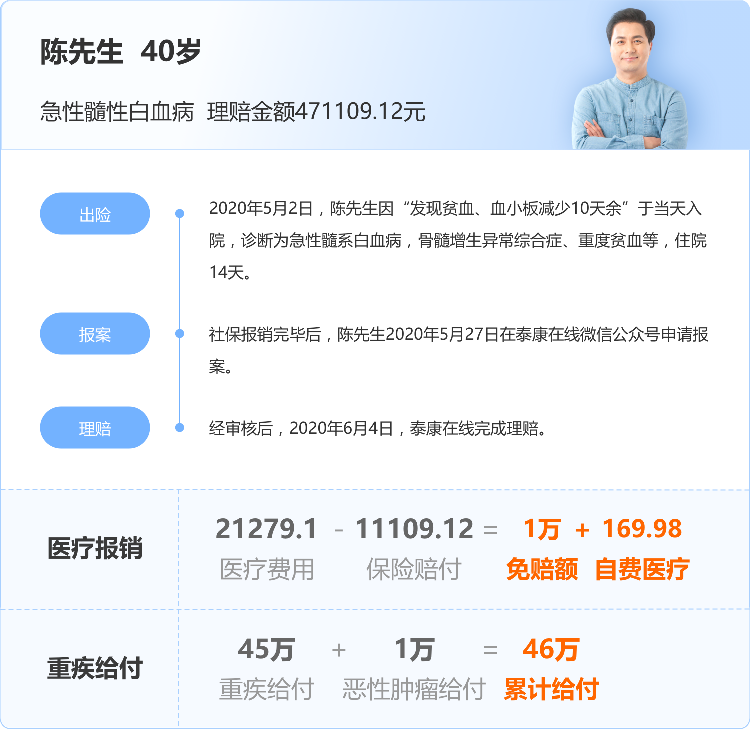 被保險人在等待期后確診罹患惡性腫瘤,我司按照合同約定給付惡性腫瘤保險金1萬元,可用于膳食費和家人的陪護(hù)費。