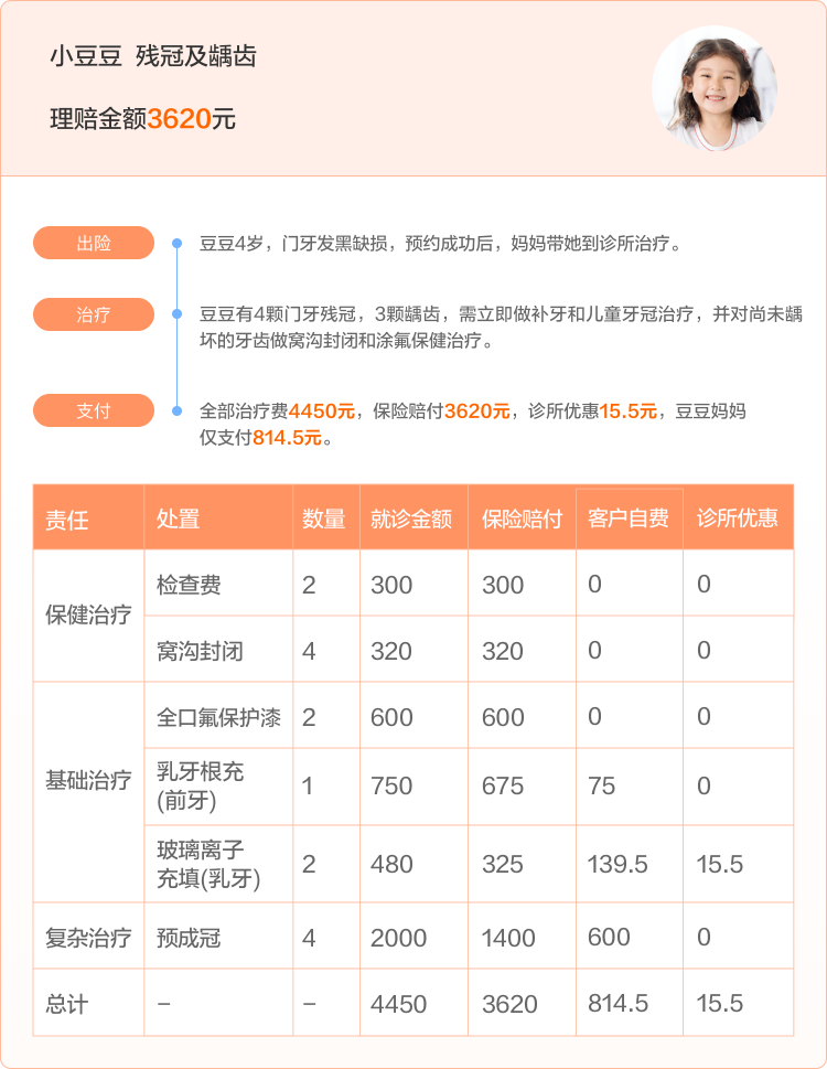 無需被保險人向保險公司辦理任何索賠手續(xù)或提供資料,這也是我們齒科醫(yī)療產(chǎn)品的理賠直付特色和優(yōu)勢