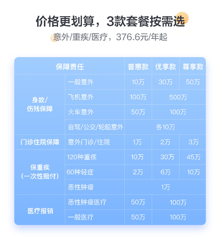 e無憂 - 泰康全能保提供重疾、輕癥、疾病醫(yī)療、意外醫(yī)療、意外身故/傷殘、交通意外身故/傷殘等基礎(chǔ)必備保障,保障全面,保額充足、價格親民。