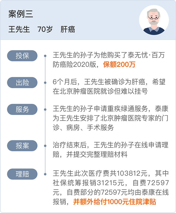 A:1.您可以關(guān)注“泰康在線保險服務(wù)”微信公眾號,在“健康服務(wù)”欄目-點擊“預(yù)約專家”根據(jù)提示申請重疾就醫(yī)綠色通道服務(wù)服務(wù)。